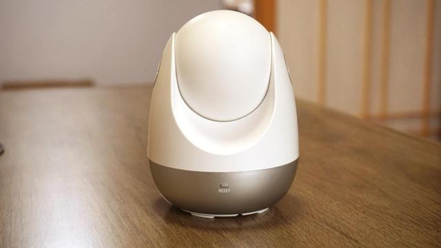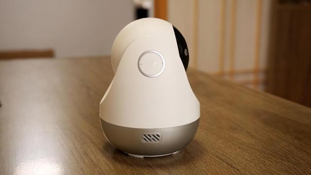 360智能摄像头云台AI版外观是一个蛋形的设计,类似俄罗斯套娃。顶部是一个球型可以上下翻转的摄像头,中间机身则可以水平转动。所以这款摄像头可以实现360°的监控视角。