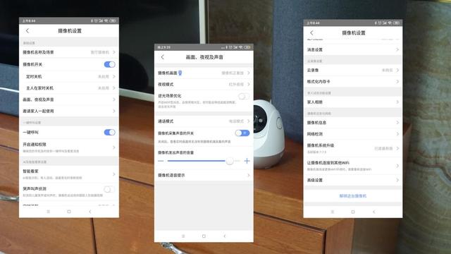当然,如果有人仅仅是拿来做安防用的,主人在家时又不想被录下(总是有人怕泄露隐私),可以设置"主人在家时关机",开启这个功能后,只要摄像机和手机连接到同一个网络,就会认为主人在家,摄像头会自动转到反面位置屏蔽监控,这样就不用担心隐私泄露了。