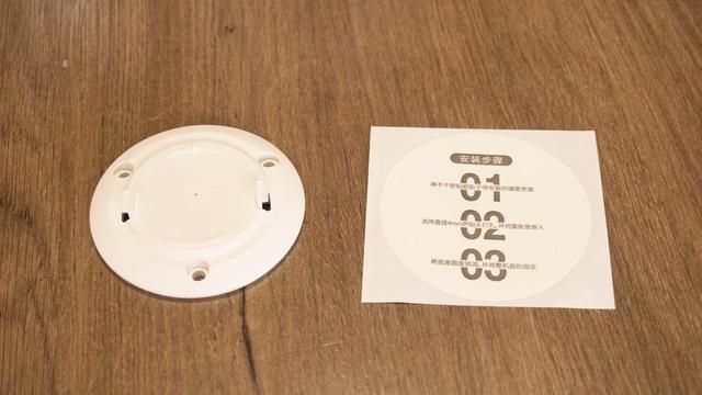 上墙底座,特别是吊顶安装的,可以搭配定位纸直接安装上,不过如果是家庭使用,还是建议放在电视柜或者书架上,毕竟这款摄像头还带有一键通话功能,装太高,这个功能就基本浪费了。