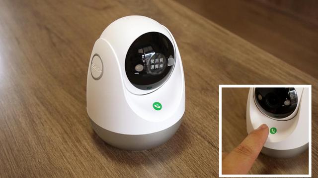 在机身上还可以看到一个电话图标的绿色按钮,这也是这款摄像头的一个特色功能,可以配合手机APP实现一键通话,对于家中老人或者孩子,碰到紧急情况下,可以通过这个按钮紧急通话。当然,如果小朋友在家,想和父母通话,也可以一键呼叫。