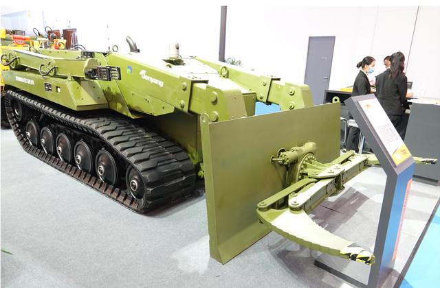 除了地面无人作战车,本届展会还出现了军用无人工程车的身影,这就是JY908-S无线遥控清障车。