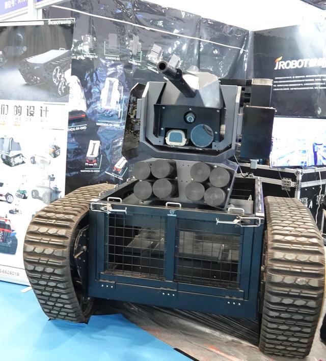 不过,这款小型地面无人作战车的遥控武器站从细节上看比较粗糙,配置的各型武器都属于模型,光电观瞄系统也直接使用民用产品。所以,这款小型地面无人作战车就火力部分而言,只是展示了一种设计概念,并不是实用化的作战装备,而“尖兵”地面无人作战车所装备的则是具备全部作战功能的实用化遥控武器站。