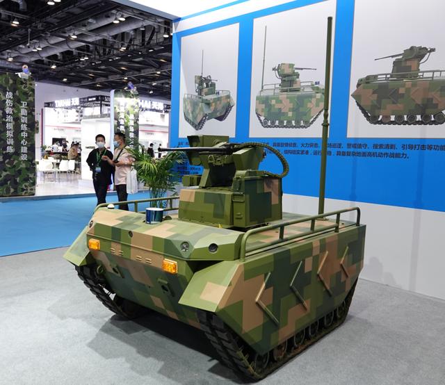 在中国兵器工业集团北京北方车辆集团有限公司的展位上,一辆名为“尖兵”的地面无人作战车吸引了很多参观者的注意。该车采用履带式底盘,装备1座具备察打一体功能的12.7毫米机枪遥控武器站,可实现敌情侦察、火力突击、战场巡逻、警戒值守、搜索清剿、引导打击等功能。该车具有较强的机动能力以及战场适应性,能够满足多种作战条件需求。