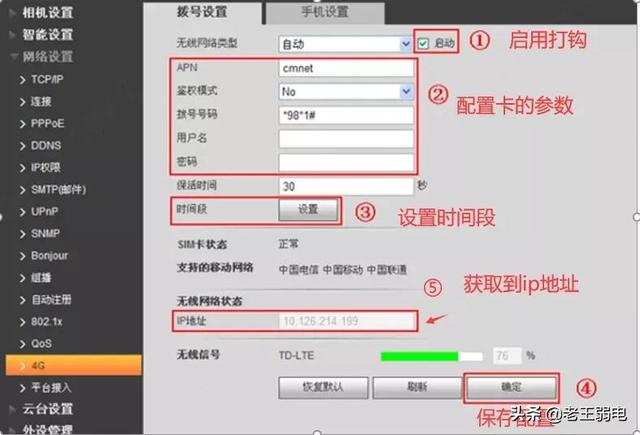 注:若现场条件允许,可以通过网线连接电脑,访问相机web界面去判断,是否获取到无线信号和ip地址,操作步骤参考本文前半部分的大华渠道系列4G相机设置介绍。