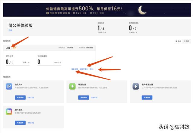 值得一提的是,这款蒲公英R300A除了4G网络之外,还有一大特色就是智能组网。据说,最多添加200个成员,不过个人免费版只能添加3个成员。想要添加多个成员的话,那只能购买他们的会员了。
