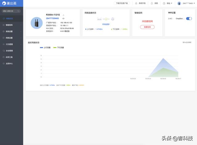 具体有什么样的功能,大家可以通过下方的图片可以看到,除了网络的设置之外,就包括了智能组网、系统设置、网络设置、行为管理、安全管理、应用工具、应用中心9个部分。各部分对应着各项功能,可以满足不同用户们的不同需求。