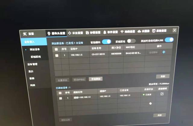 如果可以正常播放摄像机视频图像,下一步就可以将摄像机连到录像机同一个局域网内。如下图所示,我们在录像机通道管理页面可以搜到到摄像头IP地址: