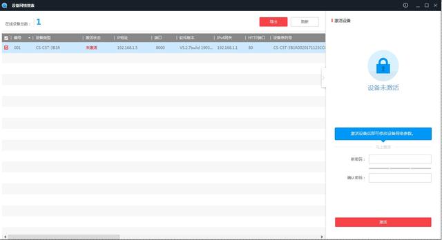 以萤石C5T摄像机为例,通过电脑客户端激活设备(设置一个不少于8位,字母及数字等字字符组成的密码)