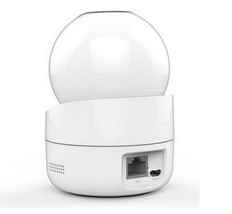 小编觉得这款产品非常萌,机身圆滑,手感不错。重置键需要将摄像头调到最顶部才能看见,“隐藏”的很好。机身背后是电源线插口和网线插口。小编给这款产品起了个昵称叫“小黑”。