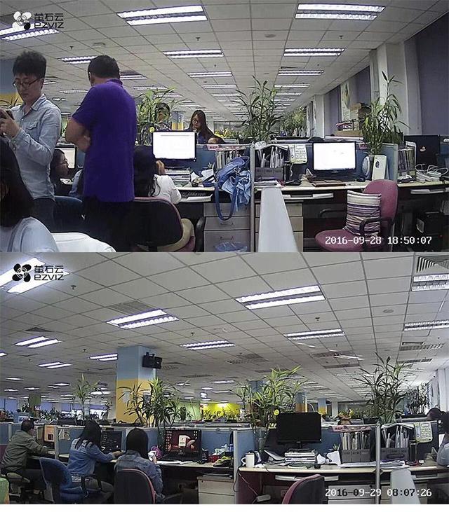 C6H还采用了850nm点阵红外技术,配合增透面板,最远照射距离可达10m,拥有出色的红外夜视能力,白天黑夜全自动切换图像模式。在夜晚低照度的情况下效果令小编也很满意。下组图为对比,前者为白天拍摄情况,后者为夜晚拍摄情况,小编在家里操控云台旋转拍摄。