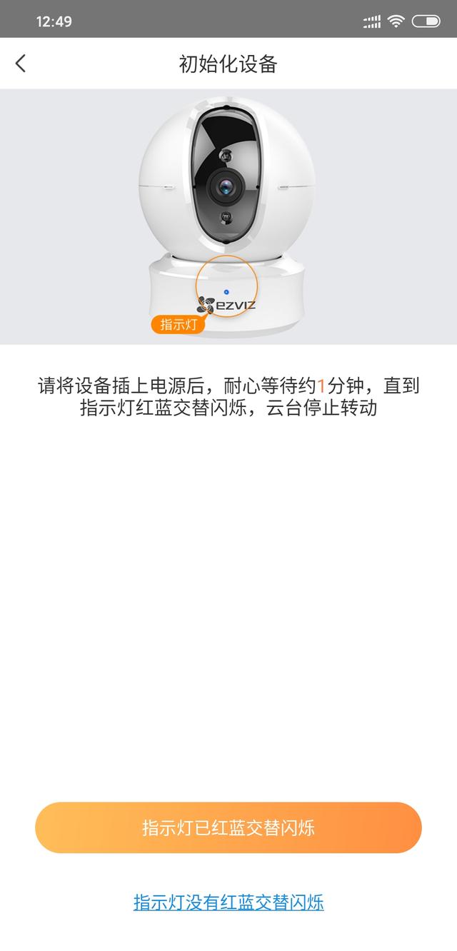 首次使用要保证手机和摄像头处于同一WiFi环境下,接通摄像头电源根据提示音等待1分钟左右,观察指示灯红蓝交替闪烁,打开萤石云App点击添加设备--扫描摄像头底部的二维码