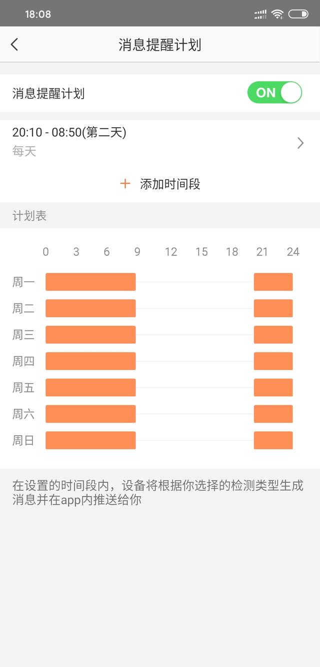 这里可以设置某个时间段如果有人闯入,就会收到提醒(也可以不用设置)