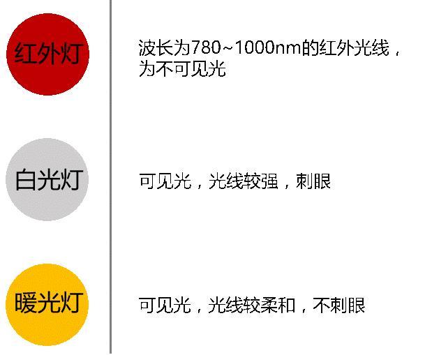 红外、白光、暖光指的是摄像机补光灯的种类,差异在于色温和波长。大家常说的白光机、红外摄像机指的就是IPC搭配了对应的补光灯。红外是应用主流,但启用红外后监控画面是黑白,如果需要呈现彩色画面,则需要使用白光/暖光灯补光。我们全系列支持全彩的IPC搭配的都是3000K暖色的暖光灯。