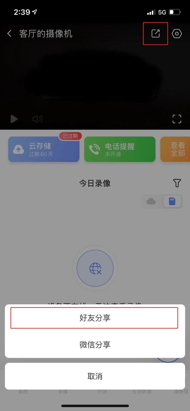 如果希望家庭成员也能随时查看视频画面,可以通过分享设备的方式实现。