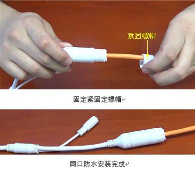 防水套套入尾线网口并旋转卡紧