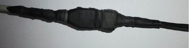 步骤二、如果是自粘性胶带拉伸至原来长度的2倍左右(PVC胶带则不能过度拉伸),然后将防水绝缘橡胶带以半搭式缠绕在需要做防水的接头上,需要注意是胶带覆盖住接口上下部分各至少3厘米;