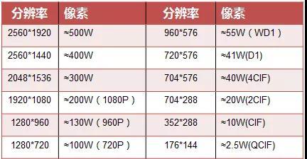 分辨率:单位长度内包含的像素点的数量。在一个固定的平面内,分辨率越高,意味着可使用的点数越多,图像越细致。监控行业常见分辨率如下: