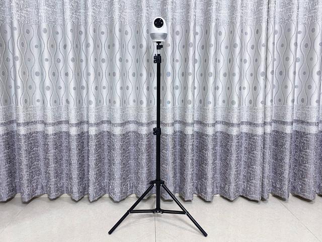如果水平放置或吊顶安装都不合适,无法满足使用需求,那么还可以安装在三脚架上使用,这时360 7C底座的优势就体现出来了。