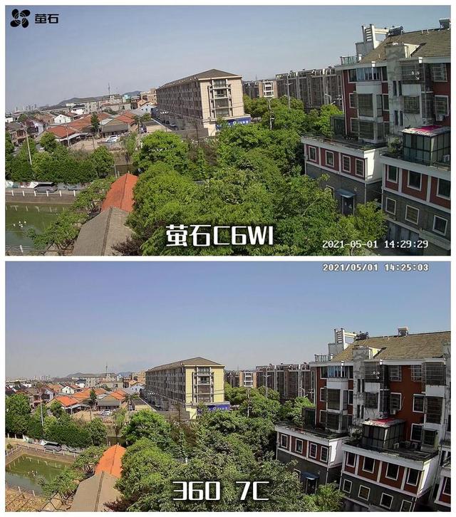 萤石C6WI和360 7C都配置400W像素的镜头,分辨率为2560*1440,达到了2.5K画质,那些曾经风光一时的1080P在2.5K面前都是浮云。两款摄像机镜头素质相当,但实际拍摄的效果还是有所区别的,萤石C6WI拍摄的照片偏暗,360 7C拍摄的照片锐度更高,总体效果感觉360 7C的会略胜一筹。