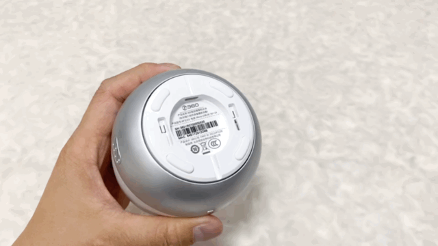 摄像机主机侧面,萤石C6WI因为整体呈球形,整个镜头被包裹在内部,所以不管从哪个方向看都是一样的,而360 7C略有不同,镜头部件是通过转轴与下部相连的,转轴处是360的logo,作为家族设计元素具有很好的辨识度。