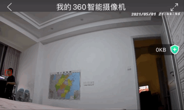 AI人形侦测功能,在360摄像机App中也会实时显示人形侦测框,人体在移动时红色方框会跟随着移动。