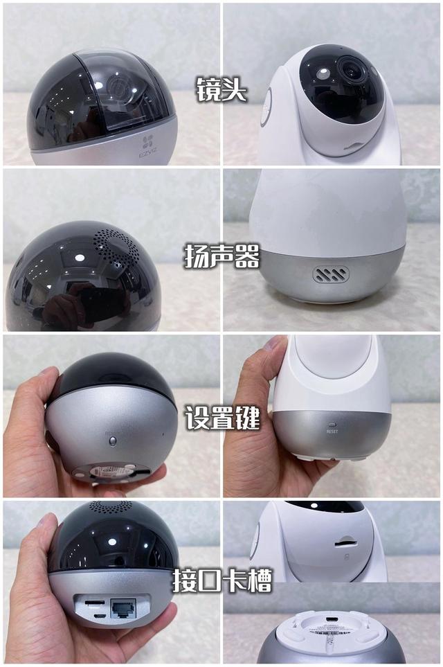 再来看看这两台摄像机在细节方面的区别,两者除了外形区别比较大,其他按键、接口等配置都差不多,区别较大的主要是接口和卡槽位置,萤石C6WI的接口和卡槽都设置在背面,而360 7C的接口设置在底部,卡槽则隐藏在镜头底部,另外萤石C6WI还比360 7C多一个网络接口,虽然现在并无啥用处。