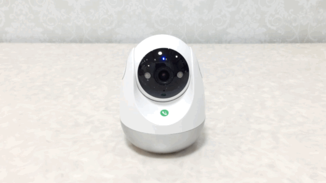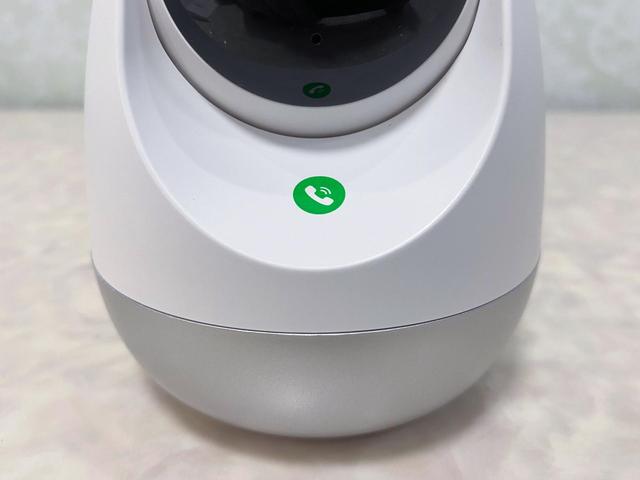 360 7C在镜头下方有一个绿色电话状的触摸键,这是360 7C特有的通话键,轻触此键就可实现一键通话功能,这样在摄像机端就可以主动呼叫手机App端,这个一键通话功能还是比较实用的,尤其适合家中的老人和小孩使用。