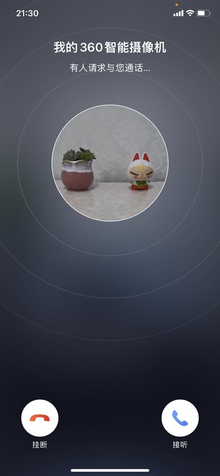 在360 7C摄像机上按下通话键后,在手机端就会弹出来电界面,同时还会显示摄像机端的画面,这个功能特别实用,尤其是家里有老人、小孩的,他们就可以直接在摄像机端向手机端发送通话请求,而且一键通话功能使用起来也很方便,无需繁琐操作。试想下这样的场景,家里的老人不会用手机,万一遇到急事时,可以一键按下摄像机的通话键,这样就可以和家人通话了,实用性特别不错。据说接下来固件升级后还会有手势呼叫,那就更方便了。