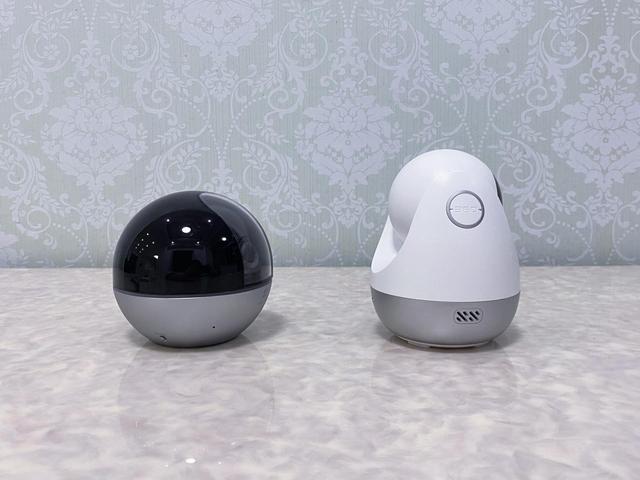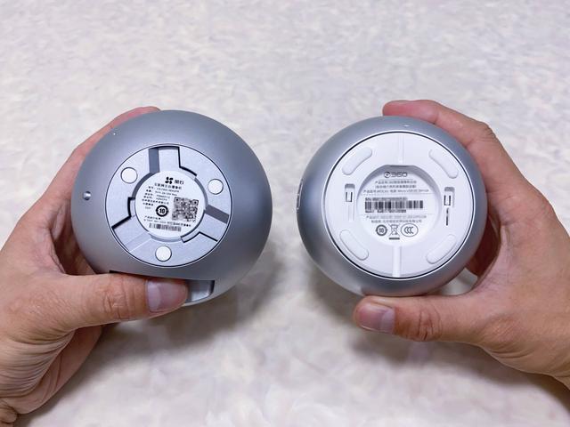 两台摄像机的主机,外观设计属于两个完全不同的风格,萤石C6WI整体外形呈圆球形,上半部为黑色,下半部为灰色,360 7C为蛋形设计,采用了黑灰白配色。单从外观上来讲,萤石C6WI更显高端气质,而360 7C则偏向于简约时尚风格。