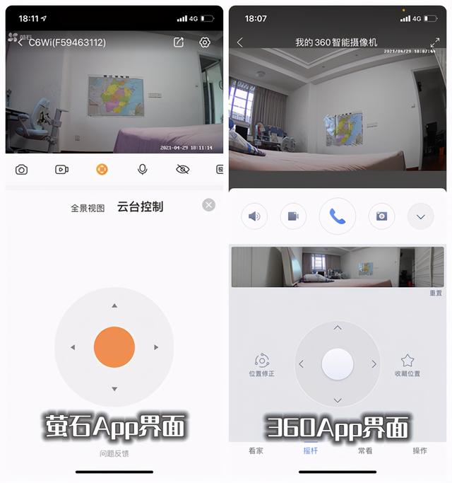 来看看萤石和360的App界面,智能摄像机的功能及设置都是在App中实现的,所以说App是否好用也很关键。通过几天的使用,这两个品牌的App都算比较好用的,在功能布局和操作方式上略有区别,一般只要稍微适应下操作起来就能如鱼得水了。