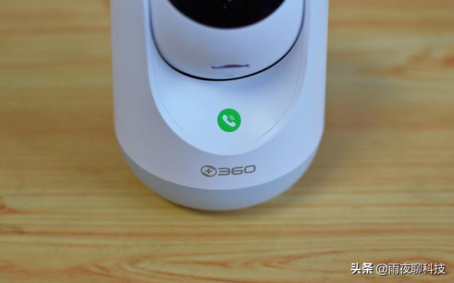 这款摄像机还支持了广大网友都喜欢的双向语音通话功能,摄像头端可以通过触摸这枚绿色的按键,连接到管理员的手机APP端,进行视频通话