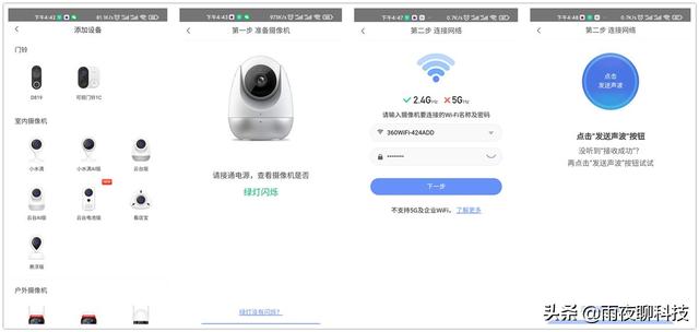 需要在手机上先下载360智能摄像机APP,然后在APP中选择新增摄像机,找到“云台AI版”,点选之后就可以再根据语音或画面提示,进行配对了。值得一说的是,这款摄像机的绑定是通过手机APP端发出一段特定频率的声音内容,摄像就会“听声”并且提示绑定操作
