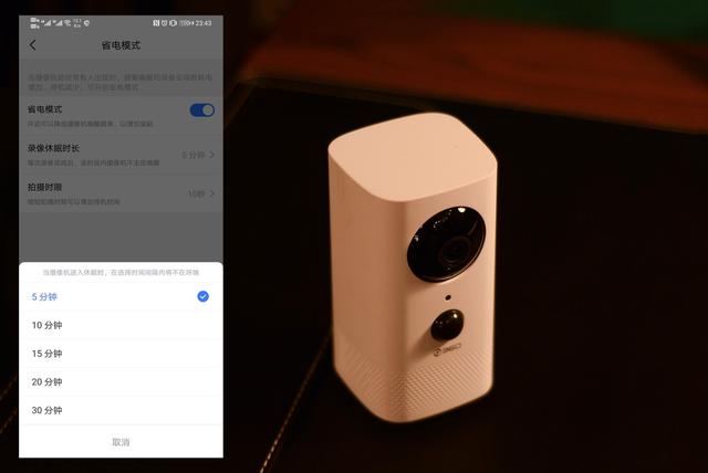 不过我发现一个小问题,就是开启省电模式后,APP里会有一个“录像休眠时长”的设置。就是说每次录像完成后,有一段时间是摄像头强制休眠的,最短5分钟。所以,这个“省电模式”到底是开还是关,还要根据实际情况自己选择。