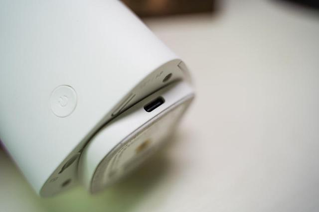 360智能摄像机3C云台电池版的底座实际上是个可以旋转的转盘,这样设计的好处是能让主机通过内部机械转轴实现360°全景视野,从而带来全景拍摄录制的体验。在转盘的一侧是USB C的充电接口,它支持有线无线双模式运作。在主机底部则有一个TF卡插槽和RESET键,这两个功能通常不太需要经常调整,所以设计部位相对较为隐秘。