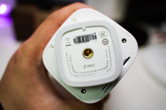 主机背面设计比较简约,除了360的LOGO,就是一个电源开关了。底盘则是搭载了一个兼容性很高的标准1/4螺母支架,可以把它装在相机支架上使用。