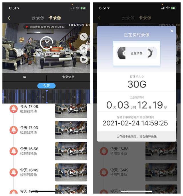 由于我在主机里装了扩展卡,所以能远程查看到卡里的视频信息,可以快进快退操作,但不可远程下载视频。如果想要下载视频的话有两种方式,一是拔出TF卡在电脑上靠背出来;二是购买云录像升级包,这样视频会全部上传到云端,用户通过远程登录APP就能自行下载。