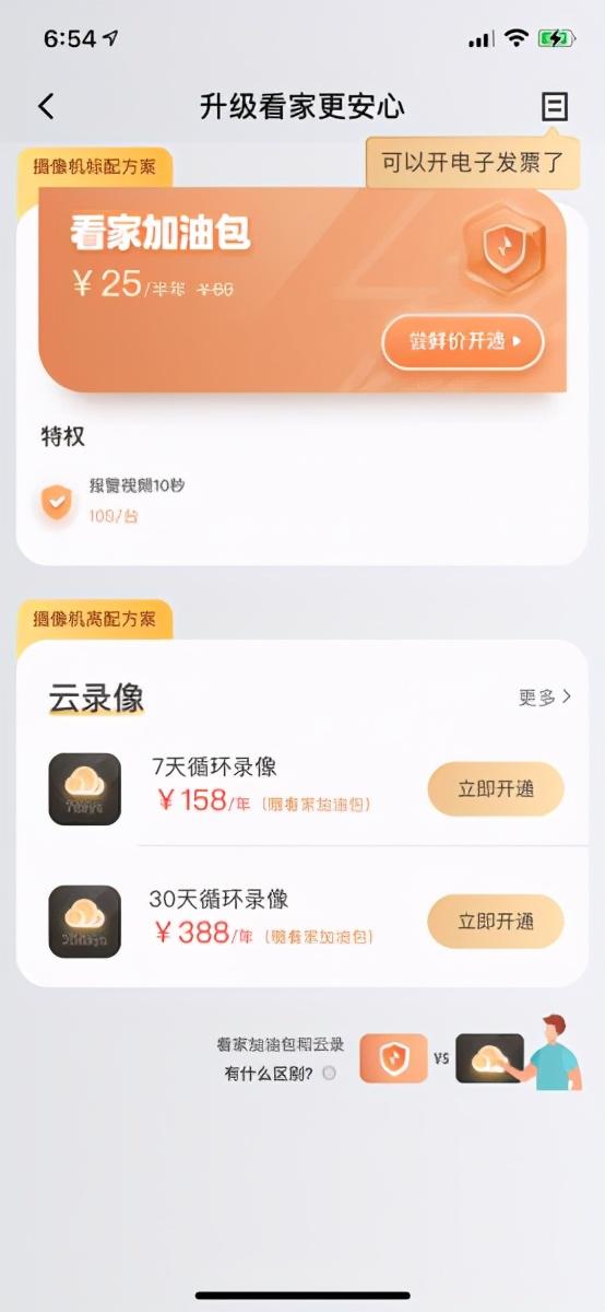 最后,就是关于云录像的升级包了,我觉得,如果你的TF卡足够大,那么没必要选择升级包。但如果你的扩展卡容量有限,那么还是建议买个升级包吧,它有7天循环保存和30天循环保存两种,远程下载视频十分方便。