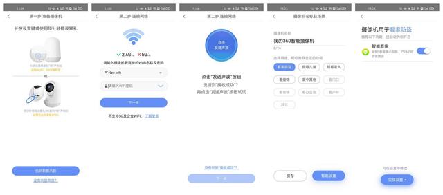 我们在APP“360摄像机”上根据指导一步一步完成设置即可。