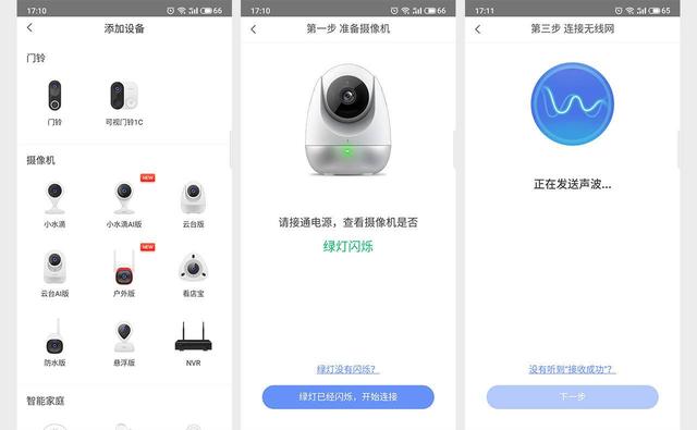 接入电源后,需要安装“360摄像机”APP来添加绑定设备,在APP添加设备中找到云台版,经过三四步即可搞定了,在连接过程中有发送声波的操作方式,感觉挺神奇!整个过程很简单,绑定成功后就可以操作了!