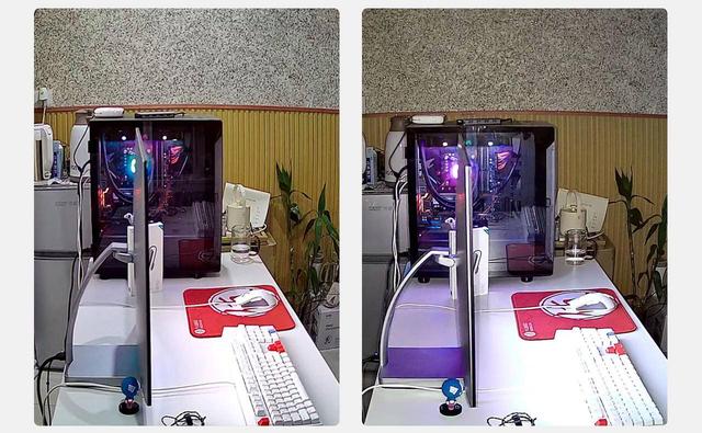 360智能摄像机云台AI版首次添加了补光灯,内置两颗大功率暖光灯,即使黑夜也能看到高清全彩画面,别小看这种功能,实际上实用性很好了,安装在屋外特别是晚上的环境,有了补光灯效果就是全彩视频了。如上图所示,左边为房间开灯的效果,右边为关灯后,开了摄像机的补光灯的效果。从这两张图的效果来说,右边在不开房间灯的情况下,只比左边暗一点点,基本都能赶上左边的效果了。为这次加入的补光灯点个赞!