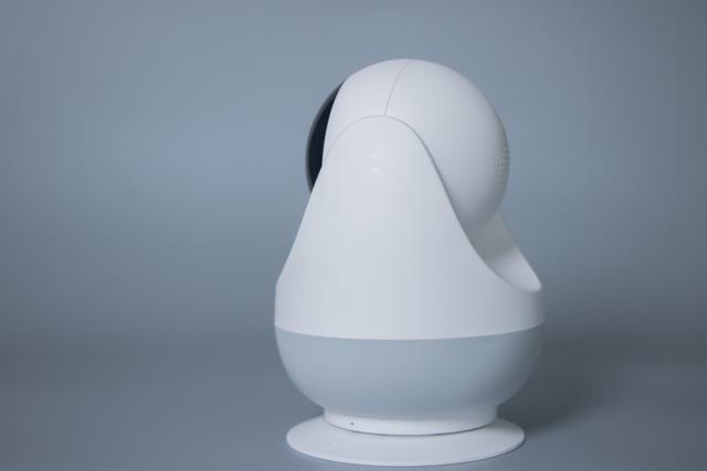 回到摄像机本身,360智能摄像机云台变焦版外观上延续了上一代的设计语言,依旧采用白色机身+银色底座的配色,使摄像机显得相当百搭,放在家中任何地方都不会感到突兀。机身整体采用了类似鸡蛋的椭圆造型,而摄像头则是圆形,能够顺畅的旋转。摄像机整体尺寸相比前作有所提升,但依旧属于小巧的范围内,能够放置在各种环境之中。