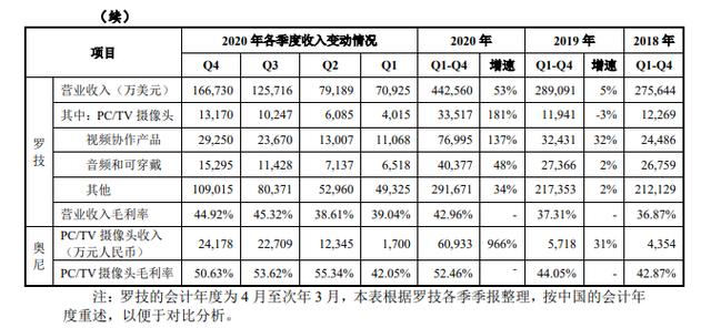 以同行罗技(Logitech)为例,其2020年收入44.26亿元,正常年份在28亿元左右。其中,PC摄像头和视频协作产品增速是所有产品中最大的,分别为181%和137%。