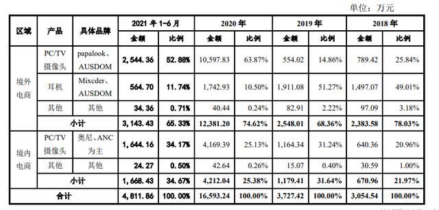 自此,奥尼电子的营收主力军由行车记录仪变为PC/TV摄像头,占比超过五成。本质来说,这还是一家受疫情影响而业绩“开挂”的跨境铺货公司。