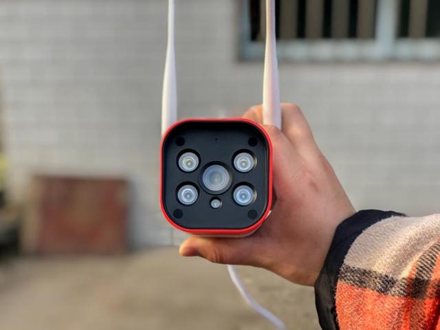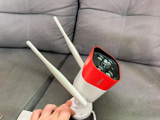 这个支棱着两天线的红色大脑袋就是360智能摄像头红警版,外观上和传统的安防摄像头相似,唯一的不同就是360智能摄像头红警版采用了红色的外壳,非常醒目,震撼效果+10。