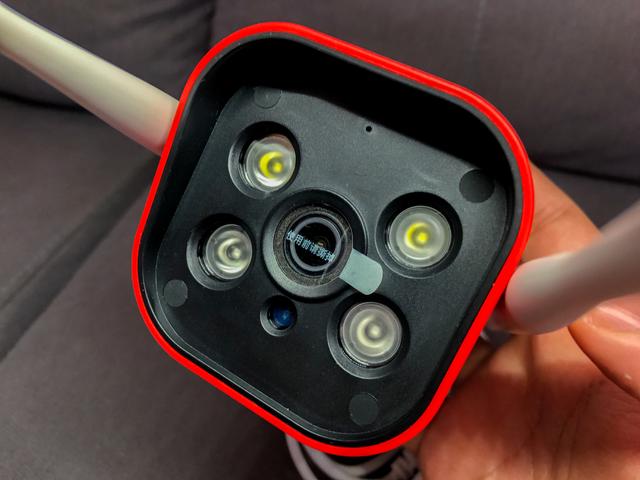 360智能摄像头红警版采用了F1.6大光圈、1/2.7英寸的120°超广角镜头,两颗红外灯,两颗白光灯,一颗MIC拾音器,一颗光敏原件。