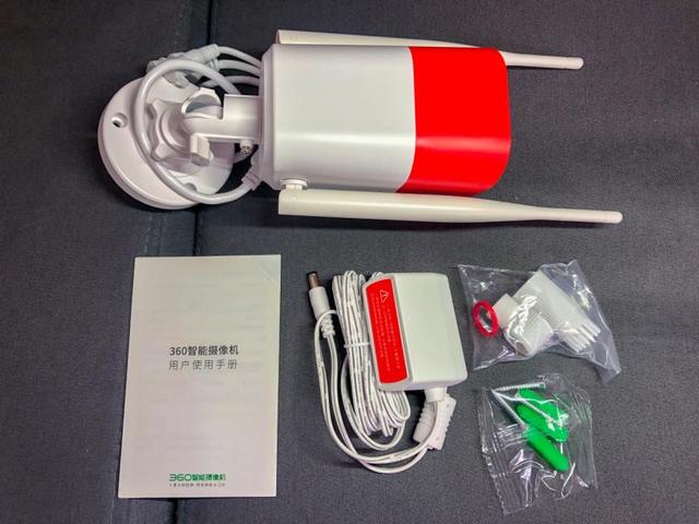 开箱部分到这里就结束了,除了上面提到了,360智能摄像头红警版还带有一本使用说明书,一包膨胀螺丝,RG45网线防水壳,打孔定位辅助贴纸。