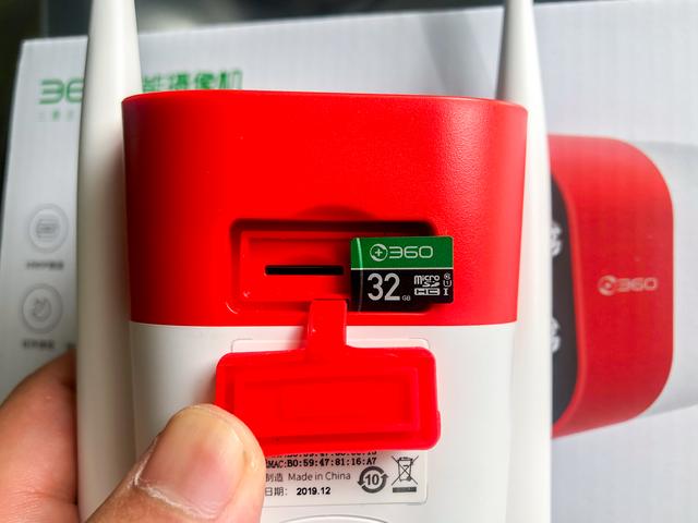 背部有TF卡槽,我同时购买了360商城的360TF卡,32G足够循环录制超过10天的内容,我想对绝大多数家庭来说够用了吧。TF卡槽带有防尘防水胶塞。