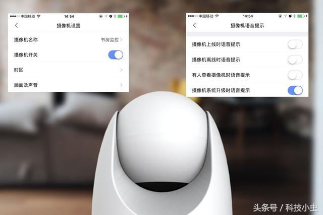 常规情况下,这款摄像头可以说真的360度全方位无死角的看见护院,但是如果在不需要的时候,简单的插拔电源,很麻烦,因此,360智能摄像头特别做了一个摄像机开关功能,结合“定时开关机”调整你的在家时间,进入自动遮蔽模式,时刻保护你的隐私安全,而自动遮蔽如图所示,镜头直对底座!同时,也可以结合语音提示功能,当有人收看摄像机时候语音提示,也能起到警醒的作用!当然,为了避免一些不必要的麻烦,笔者还是建议即使是看家护院的摄像头,也要适当考虑摆放位置,尽量不要放在卧室更衣室以及正对洗手间浴室等容易暴露隐私的地方!