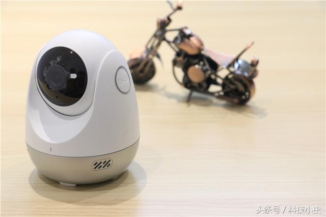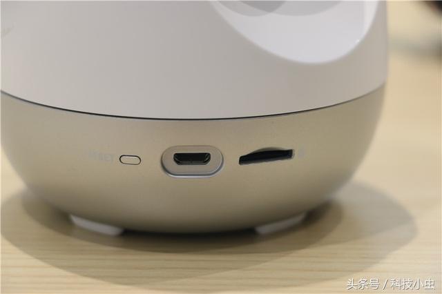 整个摄像头由3部分构成,由上至下依次是球形摄像头本体,云台以及底座构成!由于摄像头具备交互功能,因此,在底座两侧均匀分布了两个喇叭孔用于发声!