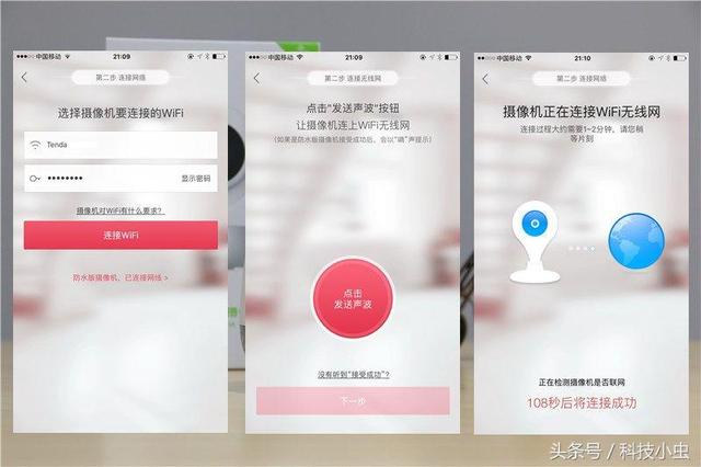 值得一提的是,这款360智能摄像头采用了声波发码的方式,将无线网络的相关信息导入到摄像头中,整个过程极为简单顺畅,比起采用摄像头采集屏幕二维码更有可操作性。